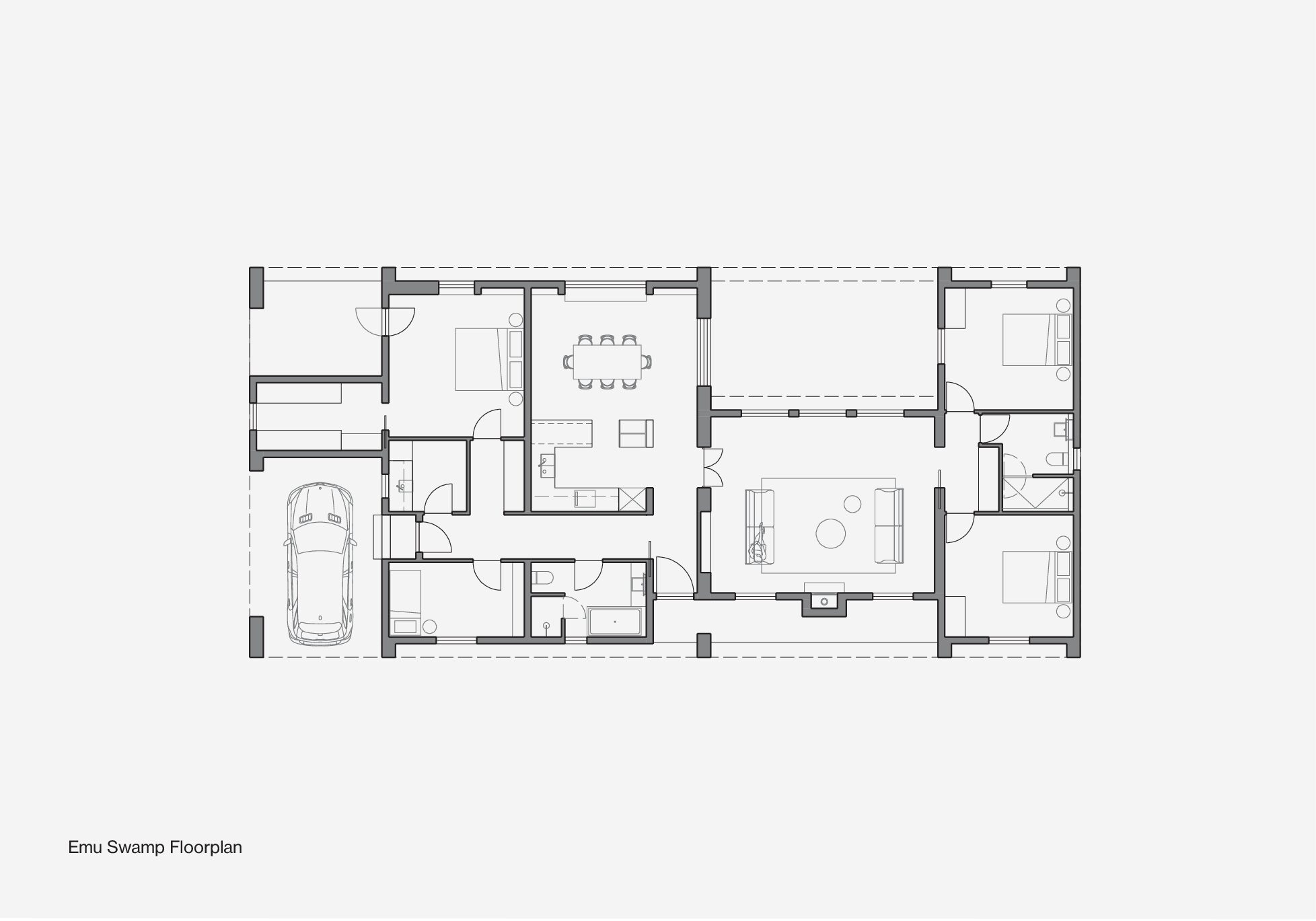 Emu Swamp is a refined rural home designed for lasting comfort and quiet simplicity. After more than four decades in the region, the clients sought a home that felt both familiar and renewed—a modest dwelling that embodies ease, warmth, and timeless design. Guided by a fondness for understated aesthetics and a deep connection to place, the vision was for a home that balances elegance with practicality, crafted to be lived in and loved for years to come.