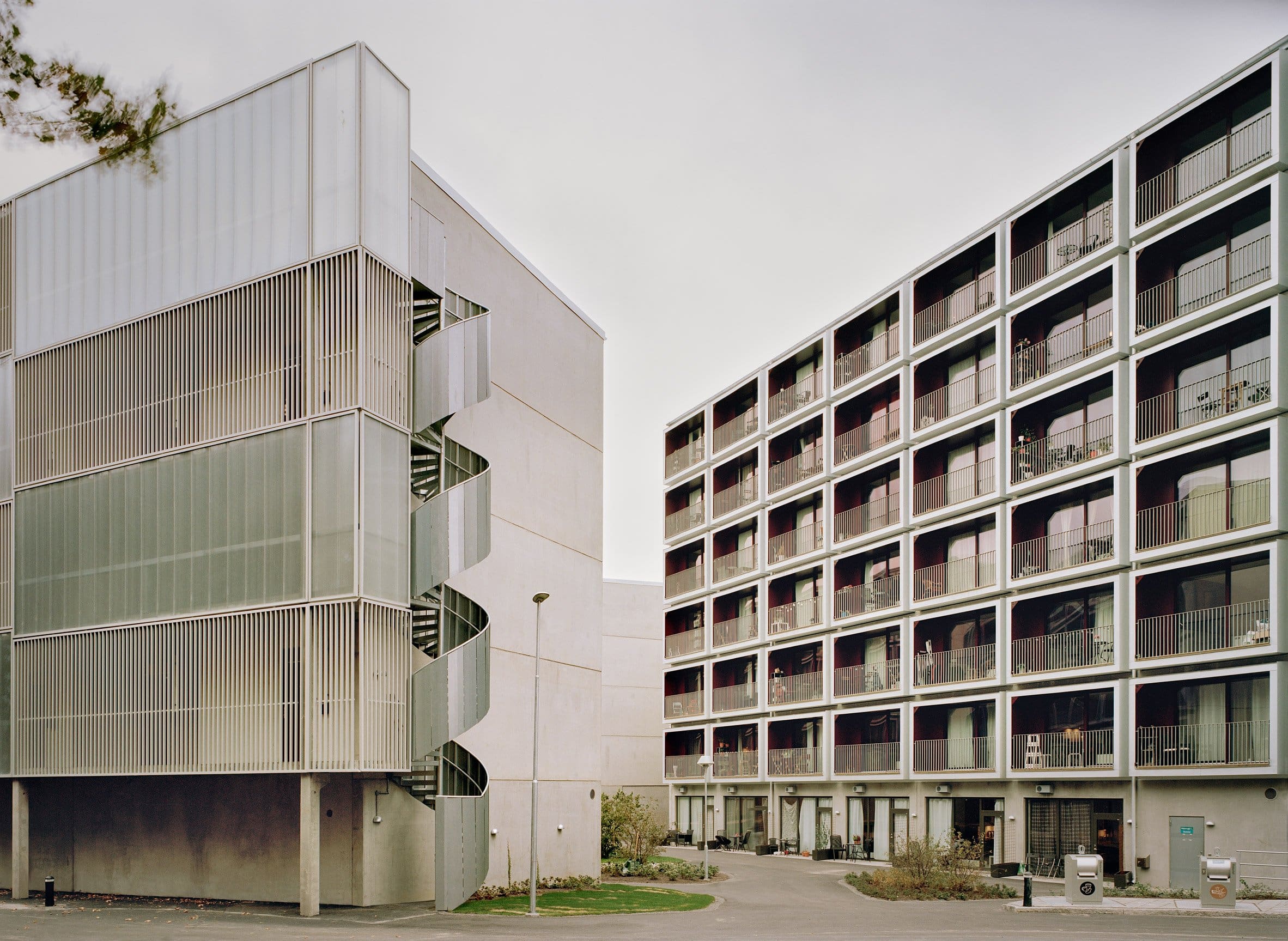Using offsite prefabrication and a palette of cost-efficient, standardised materials, the development provides 280 compact apartments for young people awaiting long-term rental housing. Six interconnected buildings are arranged around a landscaped central courtyard, creating a sense of openness and community while maximising limited urban space.