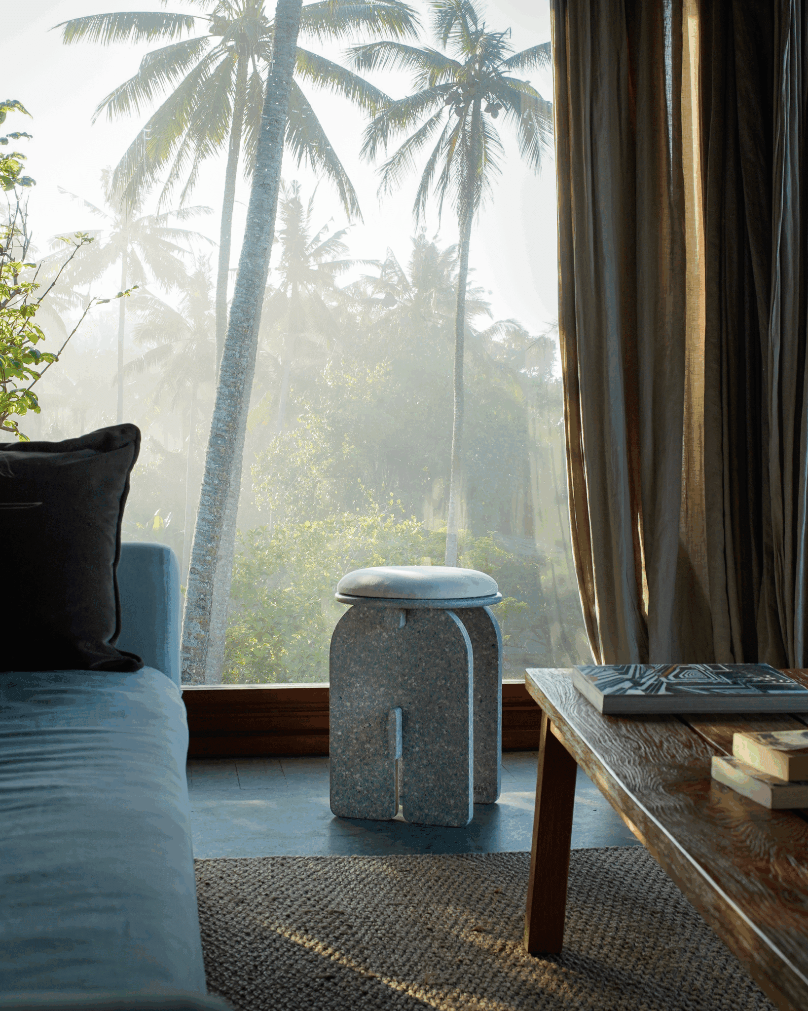 This process is more than recycling; it’s a form of regeneration. Each table, bench, or vessel tells a story of renewal—of how waste can become something functional, tactile, and timeless. Paired with refined silhouettes and warm natural tones, Sungai’s designs feel both sculptural and grounded, proving sustainability and sophistication can coexist effortlessly.