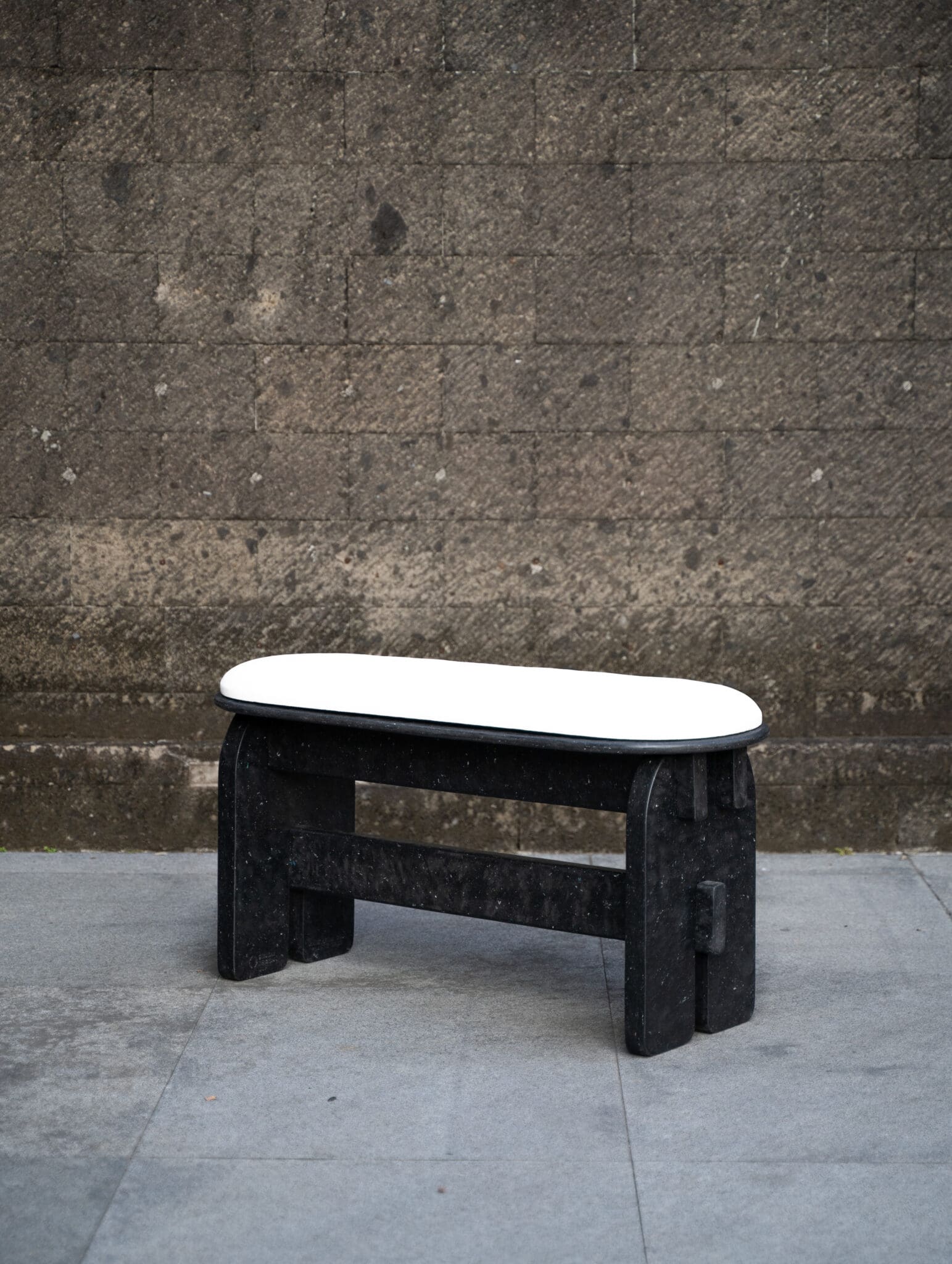 Every piece begins not in a factory, but in a river. Working with collected plastic from Bali’s rivers, Sungai diverts waste from local waterways and transforms it into beautiful, enduring furniture and objects. The material is cleaned, sorted, and processed into smooth, stone-like surfaces—a modern composite that rivals marble or terrazzo in strength and finish, yet carries a far lighter footprint.